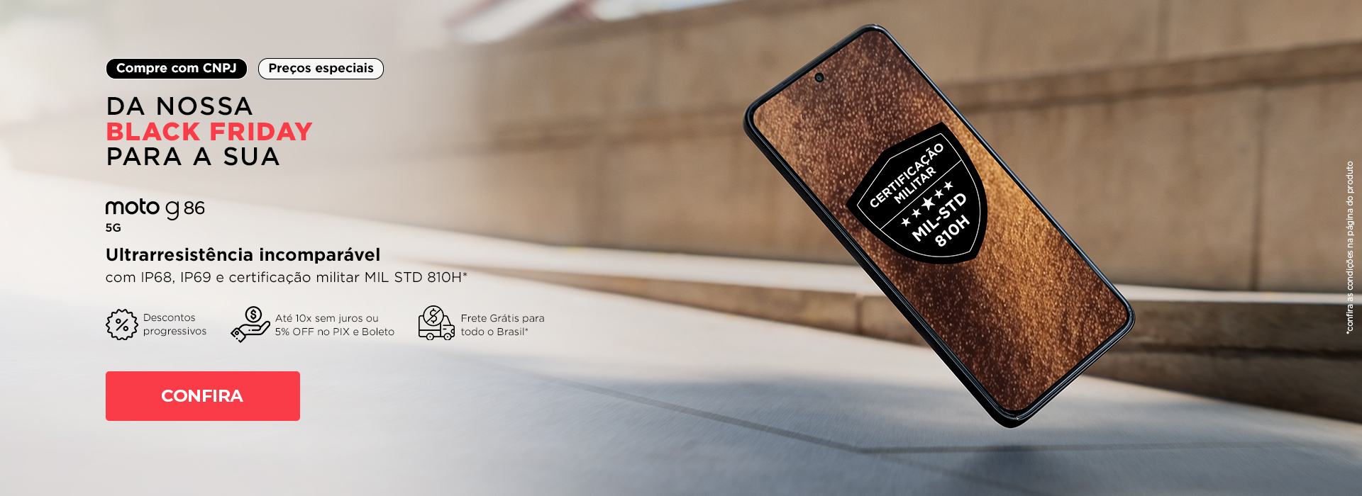 Para empresas que buscam soluções práticas e eficientes, a linha Motorola For Business foi desenvolvida para atender demandas do ambiente corporativo. Esses celulares corporativos vêm equipados com capinhas com alça, películas de proteção e recursos empresariais integrados de fábrica.